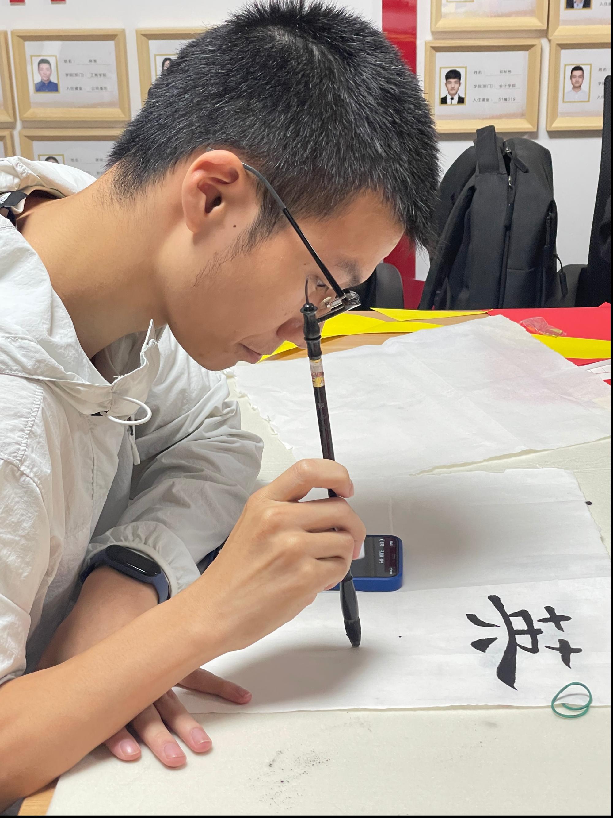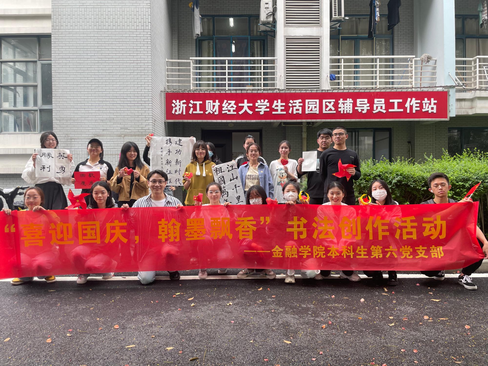 为庆祝中华人民共和国73周年华诞,迎接党的二十大胜利召开,9月29日下午,yl6776永利集团本科生第六党支部在桃李苑12幢生活园区活动室开展“喜迎国庆,翰墨飘香”书法创作主题活动,师生党员以饱满的热情一起为祖国母亲庆生。