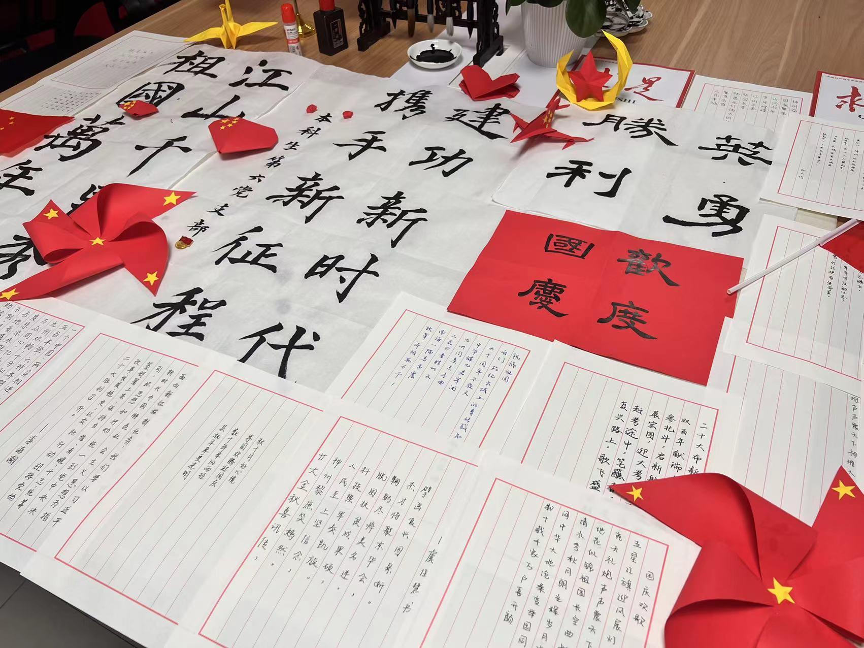 挥毫提笔,书浓墨重彩华夏历史;字字琢磨,思博大精深中国文化。在活动中,支部全体党员通过书法作品感悟红色精神、书写时代新貌,抒发大家对祖国浓浓的热爱和美好的祝愿,恭祝祖国母亲又一年新生。