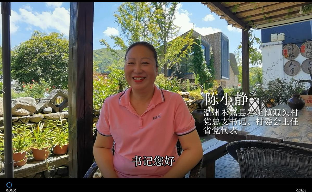 本科生第三党支部章启旸采访了温州永嘉县春镇源头村党总支书记、村委会主任省党代表陈小静,她讲述了自己创业回乡后,排除万难,从环境治理到共同富裕,破除乡村桎梏,让支离破碎的村庄重展芳华的故事。