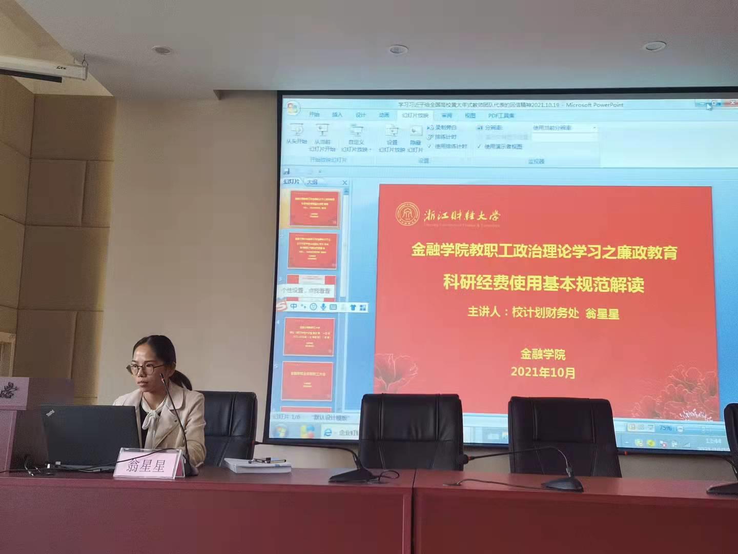 为进一步加强“清廉yl6776永利集团”建设,落实“金鹰廉韵”清廉建设“五个一”项目活动,增强学院教师廉研意识,10月19日,我院邀请校计划财务处业务骨干翁星星老师开展题为“科研经费使用基本规范”的廉洁教育专题讲座,学院全体教职工参加了学习。