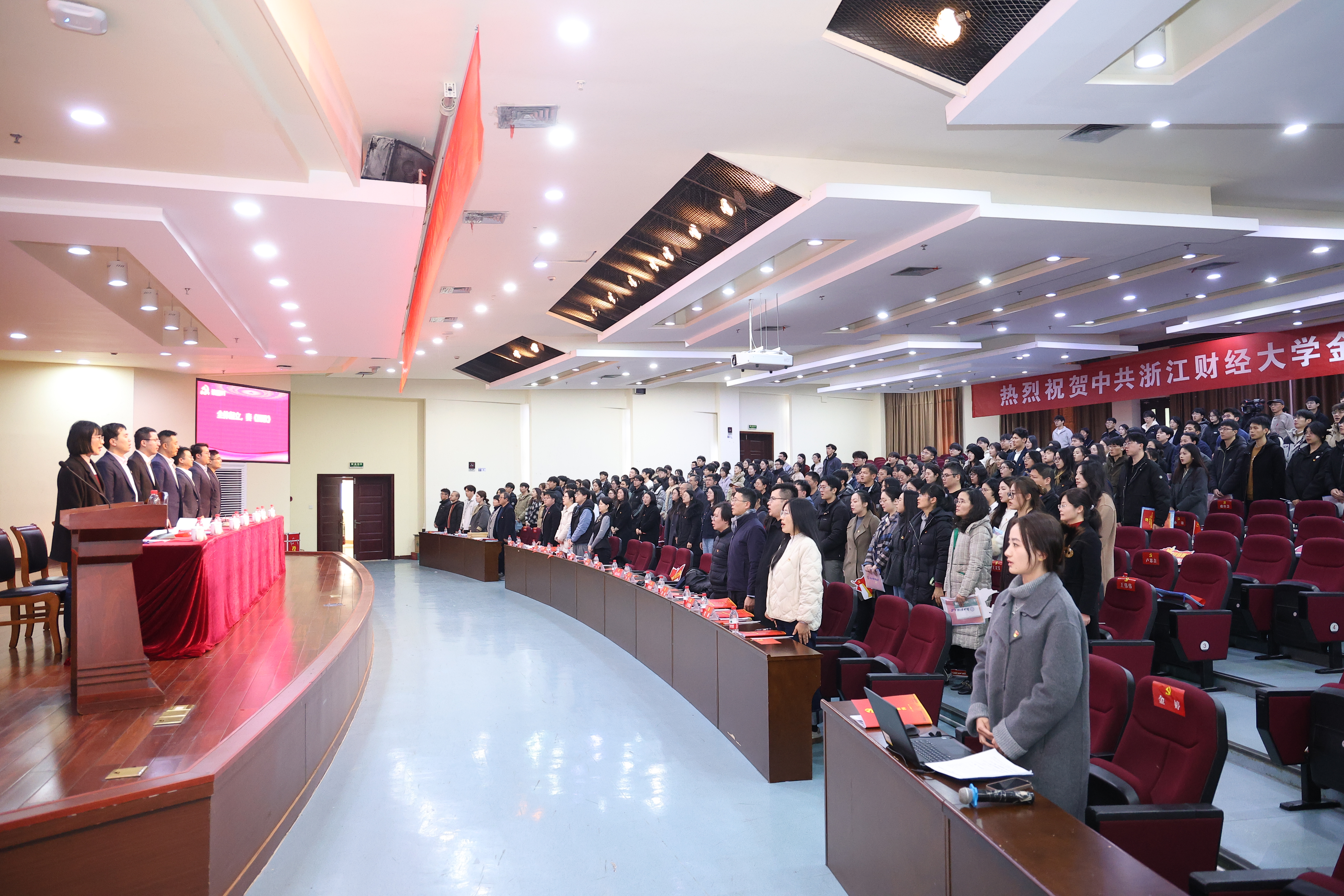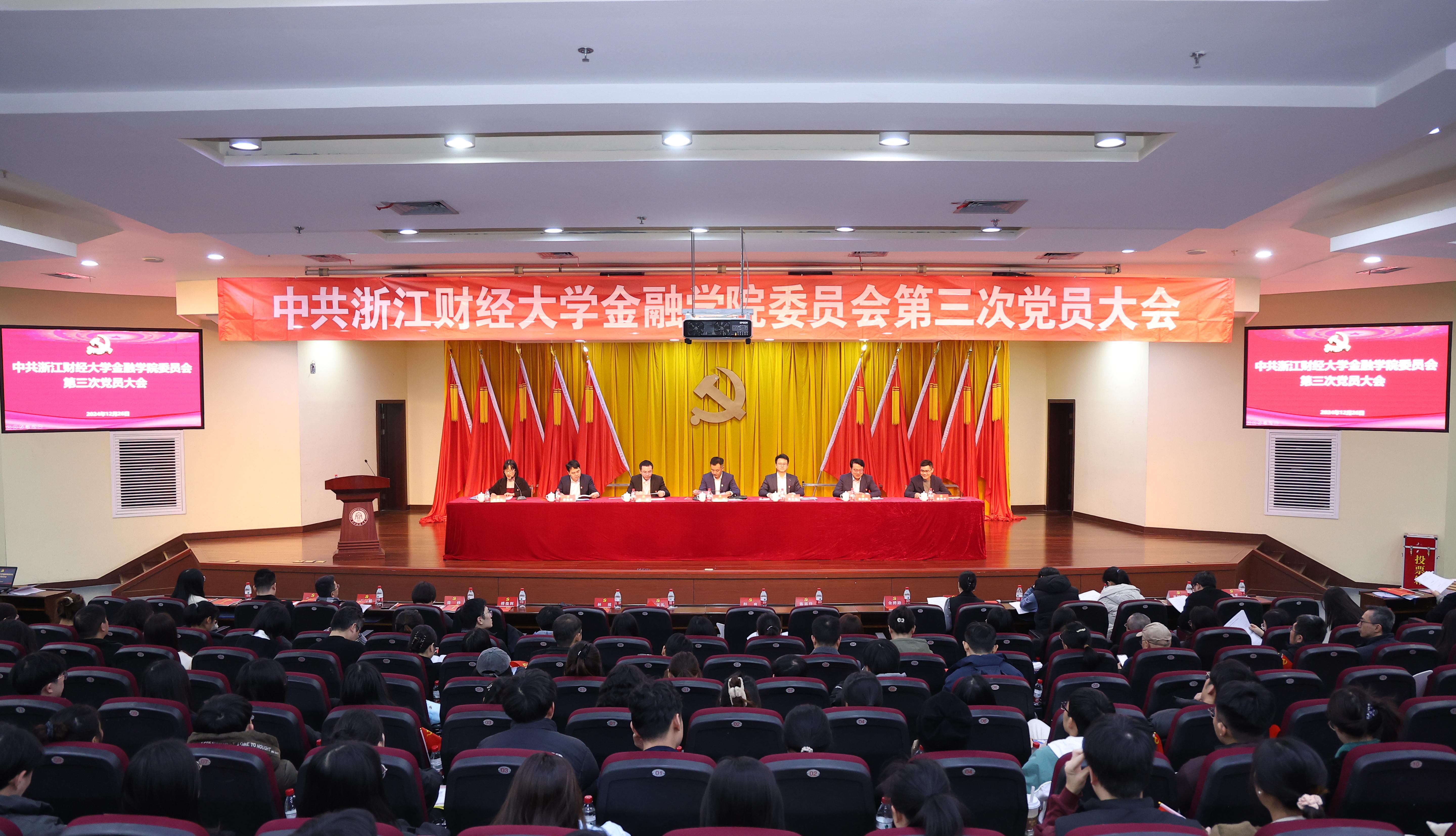 12月26日下午,中共yl6776永利集团委员会第三次党员大会在学术中心第一报告厅隆重召开。校党委副书记程爽,校党委组织部干部费伟平,yl6776永利集团、盈阳金融科技学院领导班子成员,学院民主党派成员代表及师生党员200余人参加大会。大会由学院党委副书记、纪委书记陈思佳主持。
