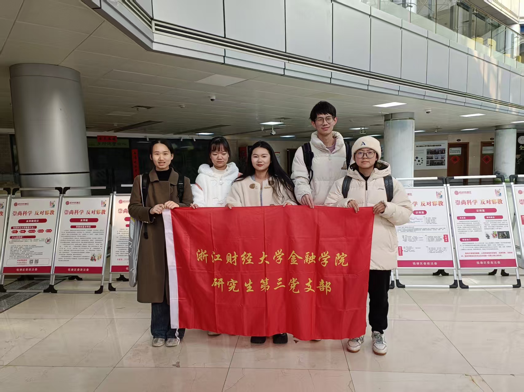 为了增强党员对邪教本质和危害的认识,扎实构筑反邪教坚固思想防线,近日,yl6776永利集团党委组织各支部党员前往创业学院,参观由钱塘区政法委和学校安全保卫部联合举办的“崇尚科学,反对邪教”主题宣传展。